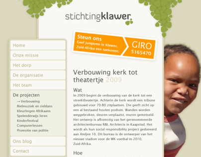 Logo design, website design and WordPress implementation for the Klawer Foundation, a volunteer organization founded in 2005. Klawer Foundation is committed to underprivileged children in the Western Cape of South Africa. In particular for the colored community in the village Klawer.