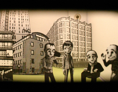 For an in-house iPhone contest I crafted this peepbox with the companies locations and management.