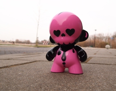 7-inch MUNNY design inspired by a tattoo design. A MUNNY is a vinyl DIY toy. Each one is a blank canvas, ready for scribbling, piercing, painting, posing, piling, dressing up and sculpting.