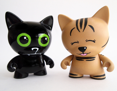 7-inch TRIKKY design. I tried to portray the actual personalities of our cats Boba and Cosmo. A TRIKKY is a vinyl DIY toy. Each one is a blank canvas, ready for scribbling, piercing, painting, posing, piling, dressing up and sculpting.