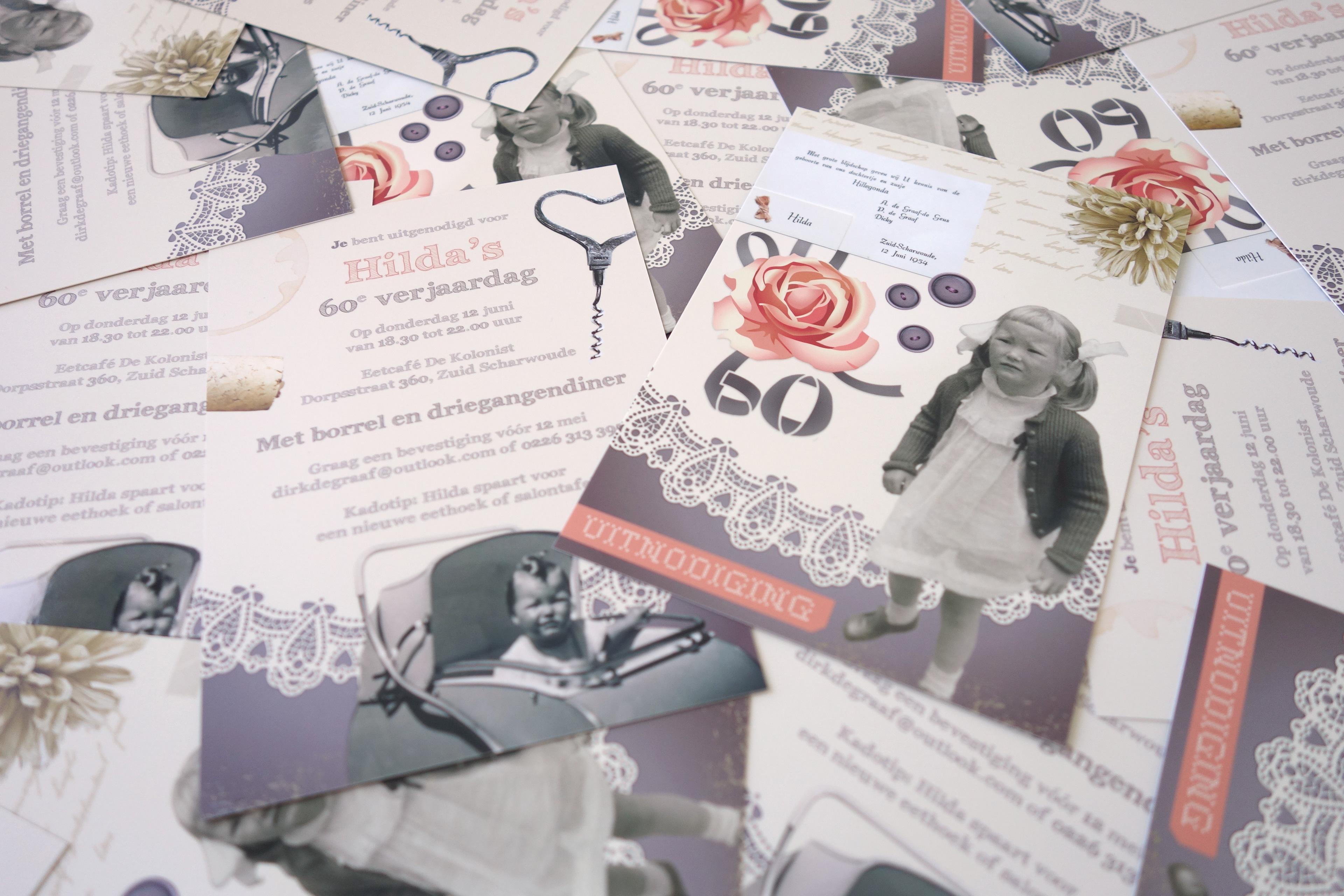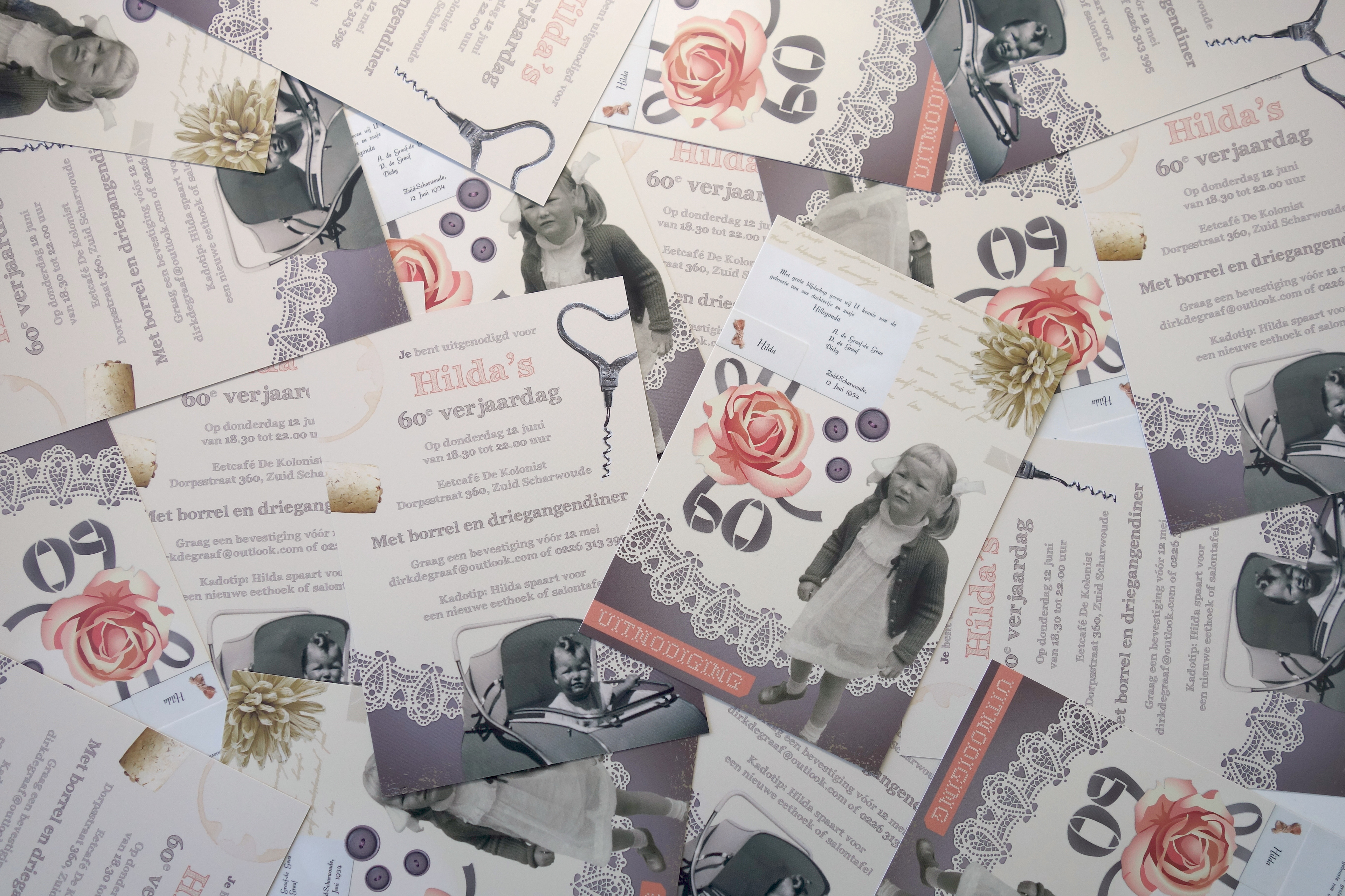 Ontwerp van de uitnodiging voor Hilda's 60e verjaardag. Ze houdt van knutselen, dus ik heb dit vertaald naar mijn ontwerp.
