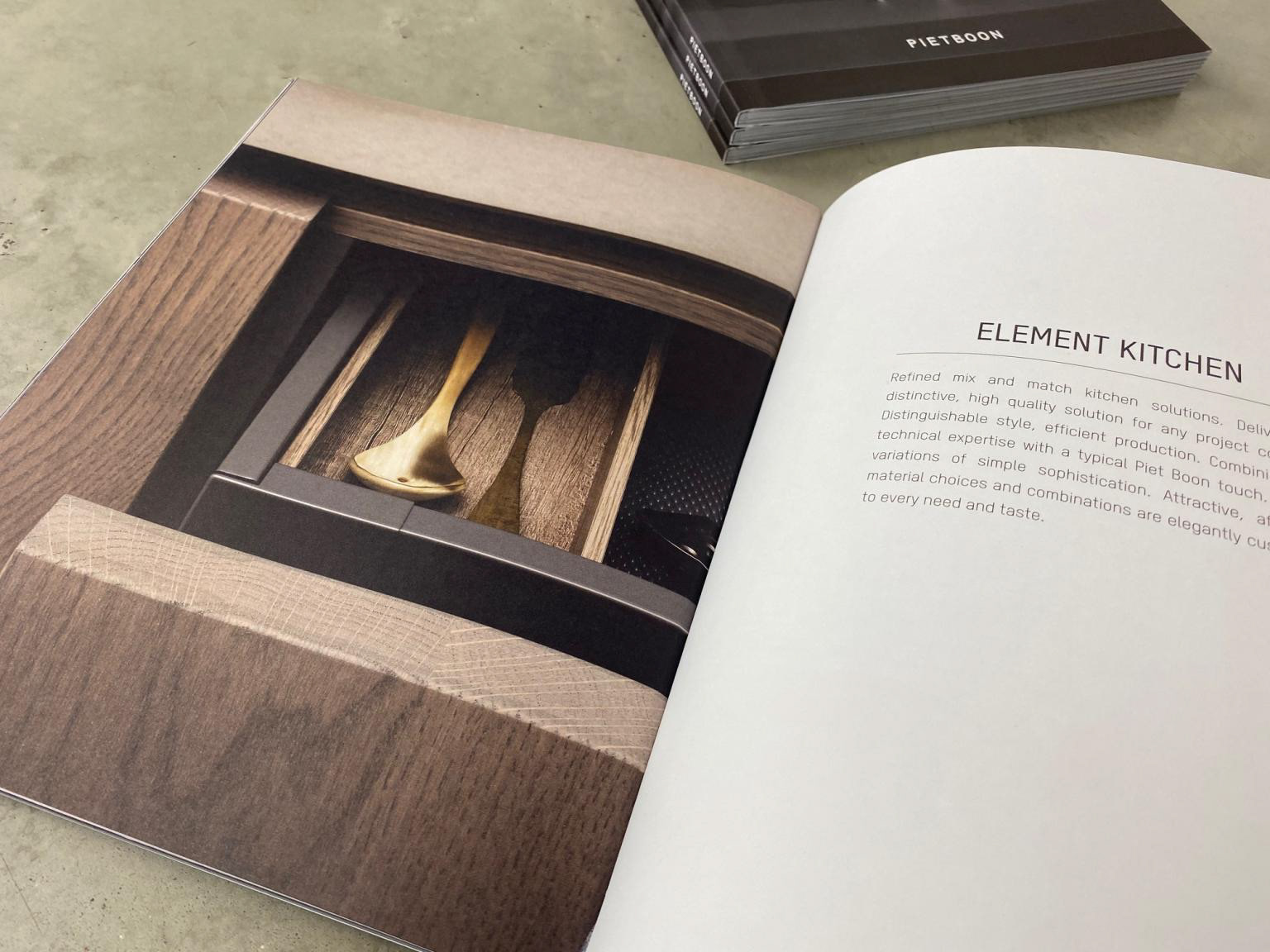 Layout van het keukenmagazine voor Studio Piet Boon. Boordevol keukeninspiratie en uitgevoerd volgens de filosofie van de studio: subtiel, stijlvol, functioneel en tijdloos.