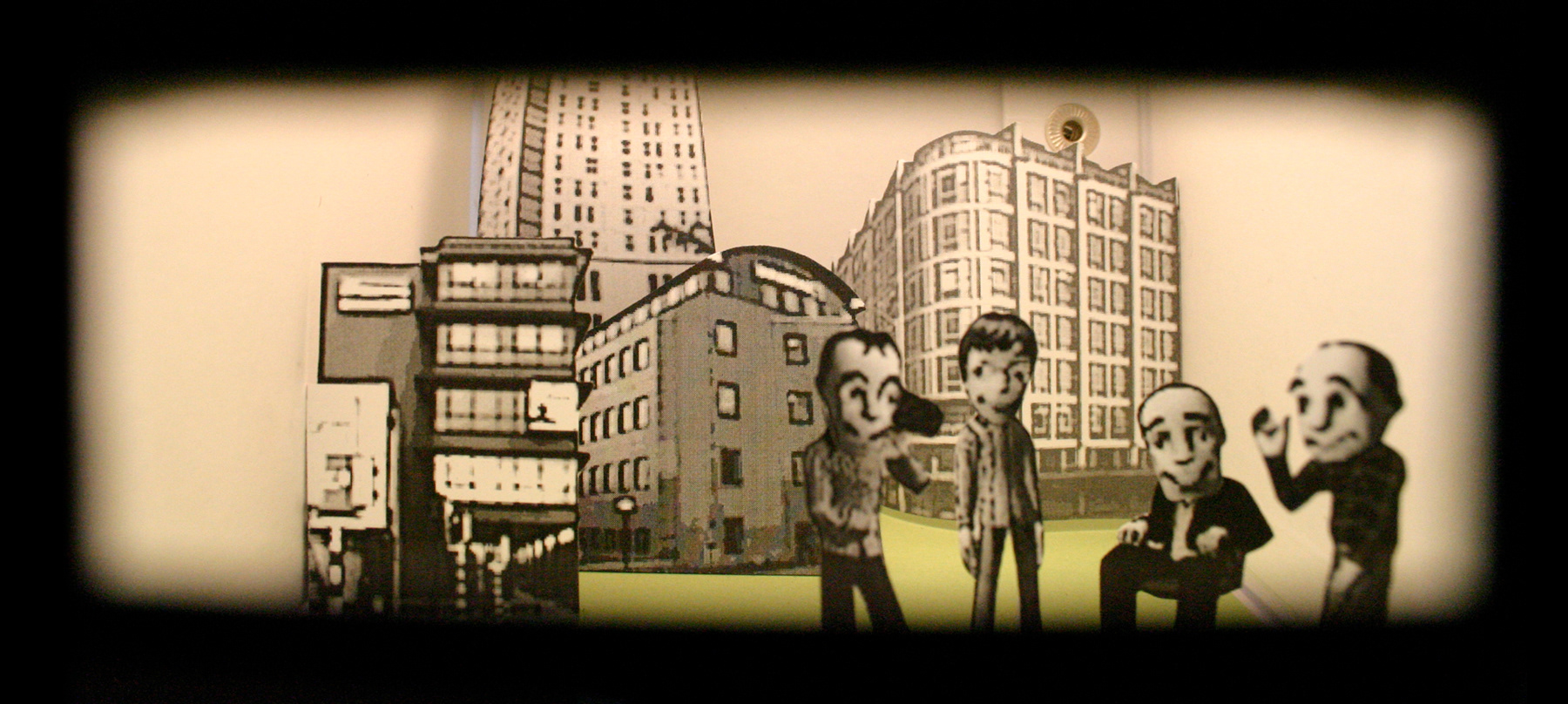 Voor een interne iPhone wedstrijd maakte ik deze kijkdoos met de verschillende vestigingen en de directie.