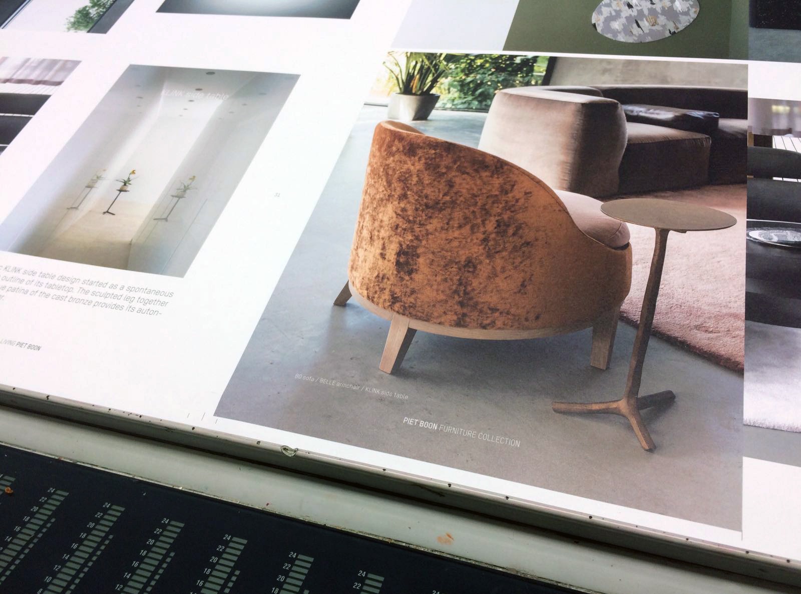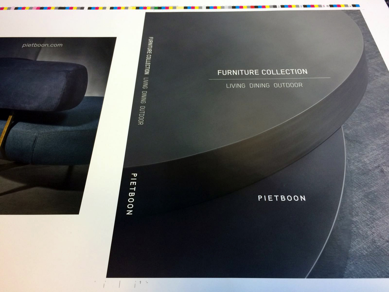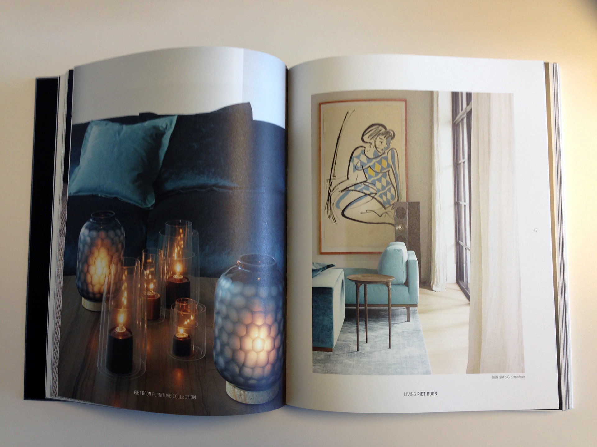 Layout van een hardcover catalogus met meer dan 200 pagina's voor de Piet Boon meubelcollectie.